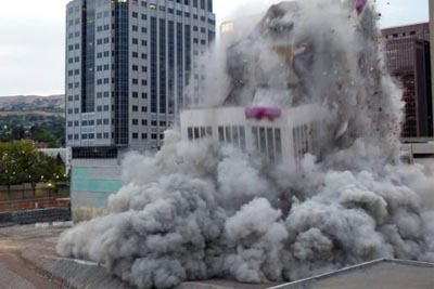 Derrubada de estruturas de grande porte de forma rápida, segura e planejada, por meio do uso estratégico de explosivos.